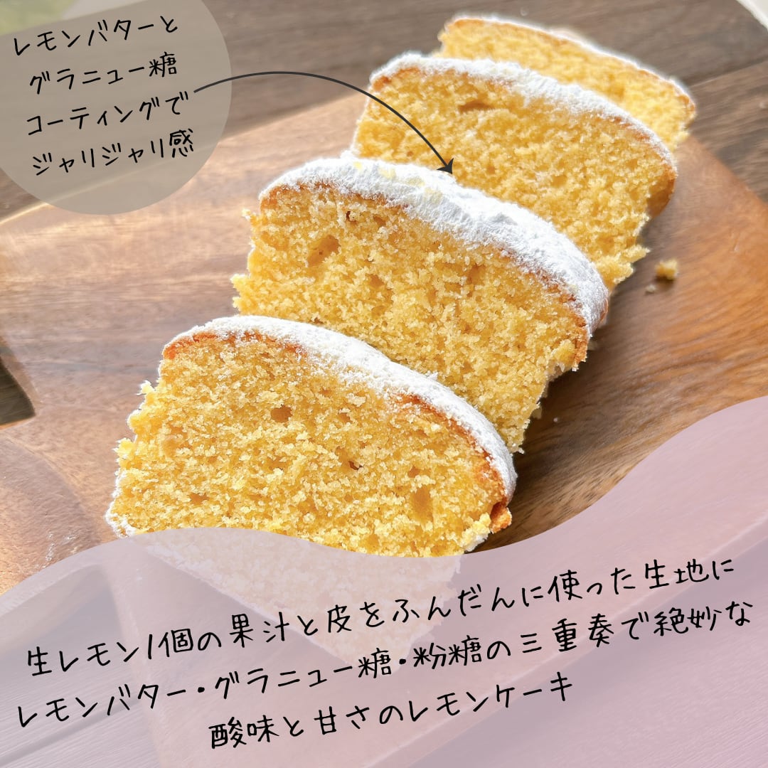 レモンバターの風味グラニュー糖のジャリジャリ感+甘酸っぱいレモンケーキが絶妙!