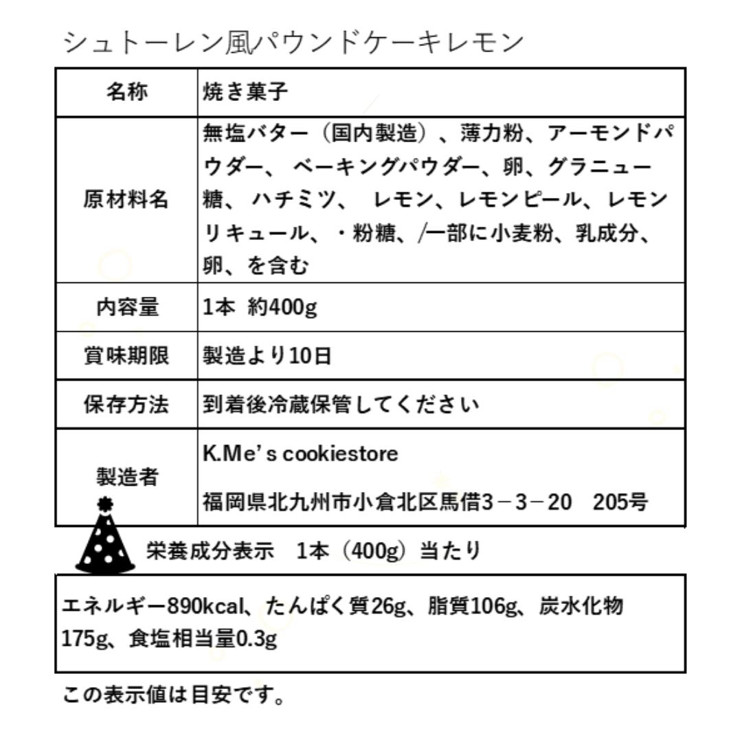 シュトーレン風パウンドケーキ・レモン1本400g